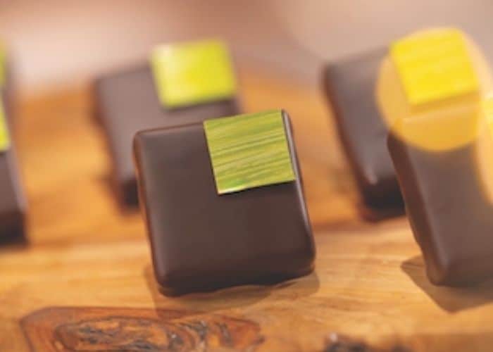 Fresh limes blended with white chocolate and enrobed in 65% dark chocolate