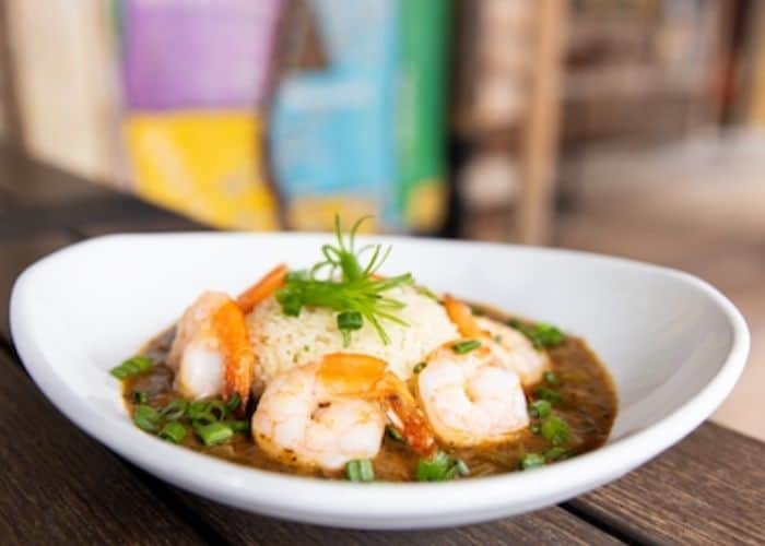 A hearty Cajun dish with shrimp sourced from the Florida Gulf in a rich, thickened sauce served over rice