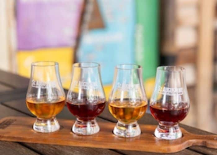 A flight of four 1-oz pours of St. Augustine favorites: Florida Straight Bourbon, Port Finished Bourbon, Toasted Finish Bourbon, and a fourth pour of your favorite