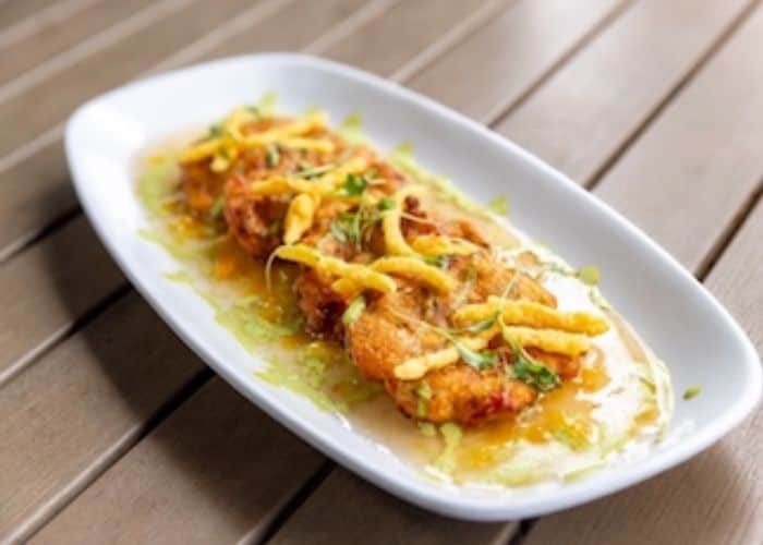 - Devil Crab Croquettes – Deviled crab cakes made with sweet, flaky blue crab and topped with a bright, garlicky mojo aïoli (NEW)