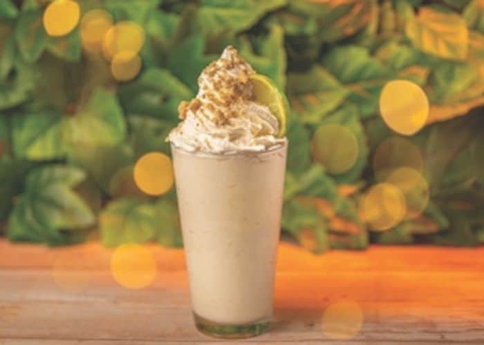 Key Lime Gelato Shake: Vanilla gelato blended with Minute Maid Lemonade and graham cracker crumbs topped with whipped cream, graham cracker crumbs, and a lime wedge (non-alcoholic)