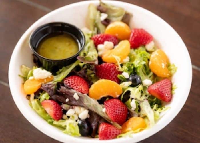 Fresh greens, strawberries, blueberries, mandarin oranges, and feta topped with house-made citrus vinaigrette dressing