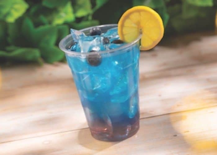 Three Olives Blueberry Vodka, blue curaçao syrup, Simply Lemonade, and Minute Maid Cranberry Juice garnished with blueberries and a lemon wheel