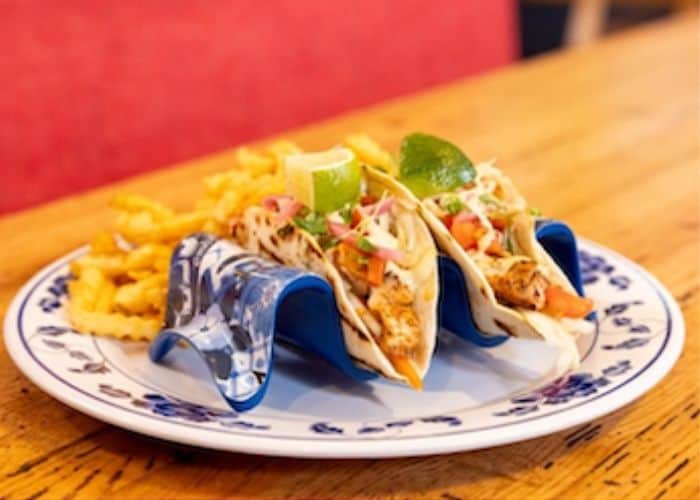 Mahi-mahi, blackened or fried, topped with Asian slaw, house-made pickled red onion, fresh cilantro, and lime wedges